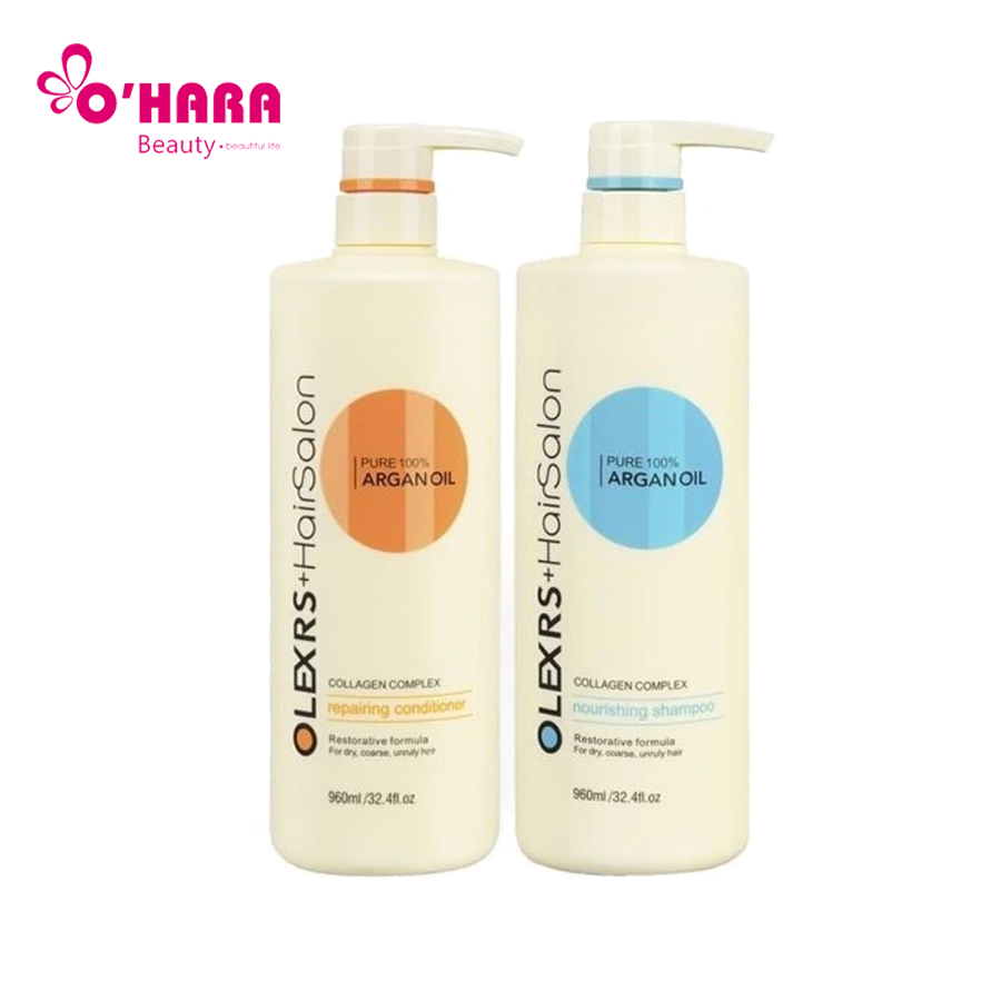 Dầu gội xả Olexrs Hair Salon Argan Oil Collagen Complex được phân phối cho các salon tóc chuyên nghiệp hỗ trợ phục hồi tóc khô, hư tổn, gãy rụng.