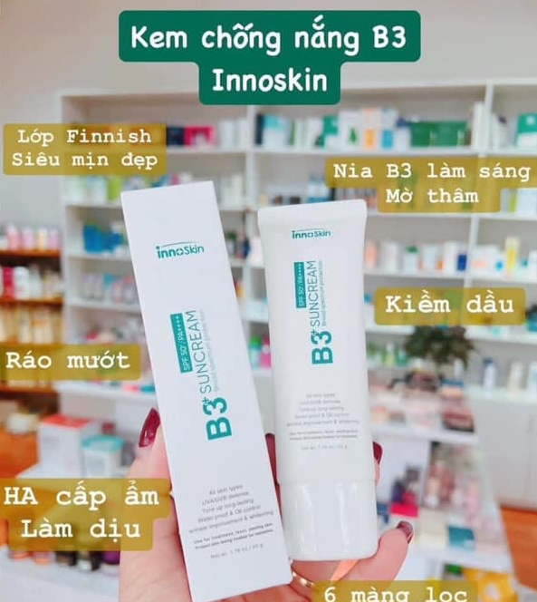 Siêu phẩm kem chống nắng phổ rộng B3+ innoskin với 6 màng lọc tân tiến nhất giá siêu ổn.