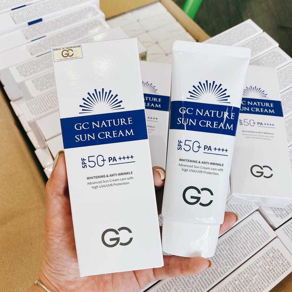 Kem chống nắng GC Nature Sun Cream là một sản phẩm kem chống nắng của thương hiệu GC. Kem chống nắng này được thiết kế để bảo vệ da khỏi tác động của tia UV từ ánh nắng mặt trời. Sản phẩm có chỉ số chống nắng cao và được chiết xuất từ các thành phần tự nhiên như chiết xuất lá xanh, hoa cúc và nha đam.