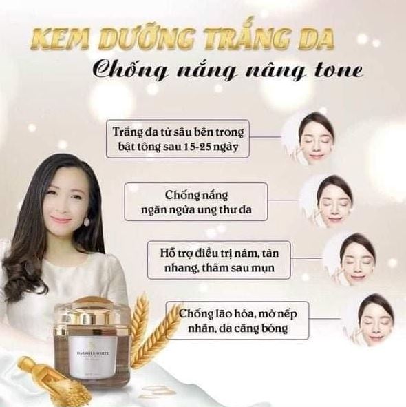 - Dưỡng Da Trắng Sáng: Kem giúp làn da trở nên trắng sáng và nâng tone một cách nhẹ nhàng và an toàn.