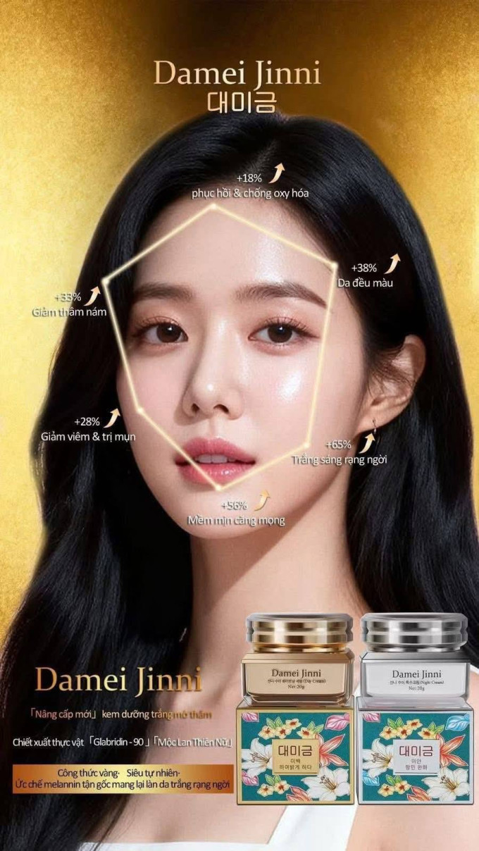 Với thiết kế sang trọng, chất kem mịn nhẹ và khả năng thẩm thấu nhanh, Kem Damei Jinni đang là lựa chọn hàng đầu của phái đẹp trong việc lấy lại làn da sáng mịn, rạng rỡ chỉ sau vài ngày sử dụng.